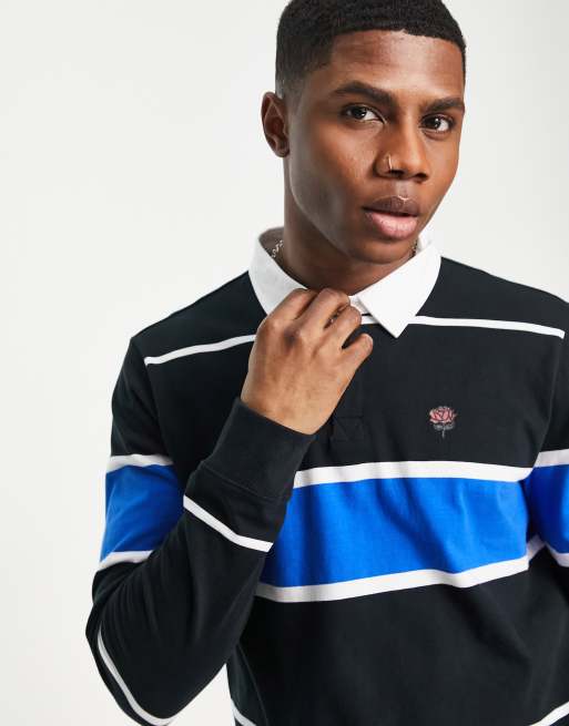 Vans - 66 Champs - Rugbyshirt in zwart met strepen