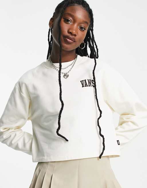 Vans - Cropped, boxy varsity sweatshirt in wit, exclusief bij ASOS