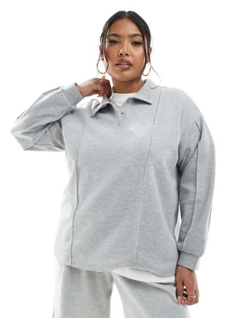 Vero Moda Curve - Gestreepte jersey polotop in lichtgrijs gemêleerd, deel van co-ord set