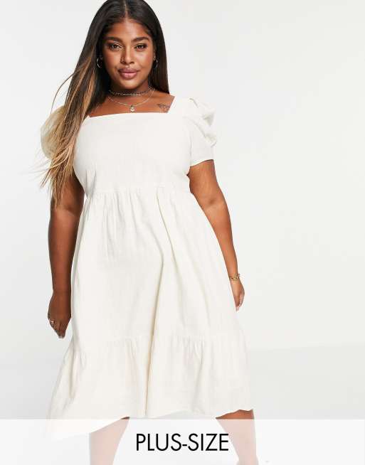 Vero Moda Curve - Midi jurk van katoen met pofmouwen in crème - CREAM