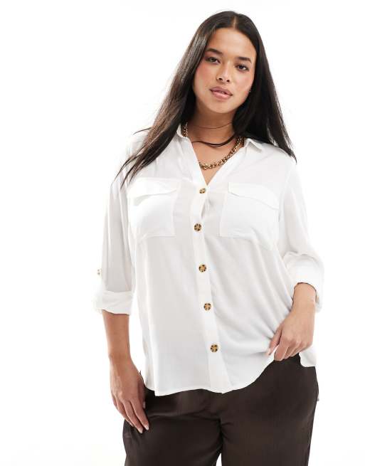 Vero Moda Curve - Overhemd met knopen en borstzakken in wit