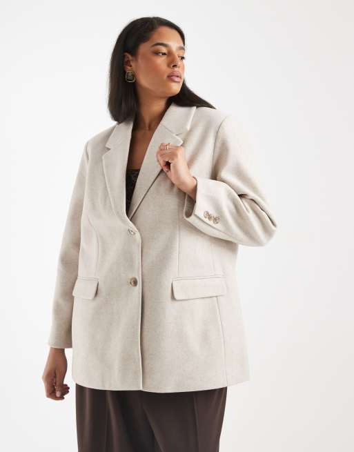 Vero Moda Curve - Oversized blazer van vilt in stone