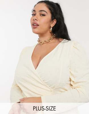 Vero Moda Curve - Overslagtop met knoopdetail en pofmouwen in crème