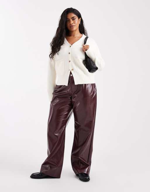 Vero Moda Curve - Tessa - Broek van vinyl met wijde pijpen en hoge taille in bordeauxrood