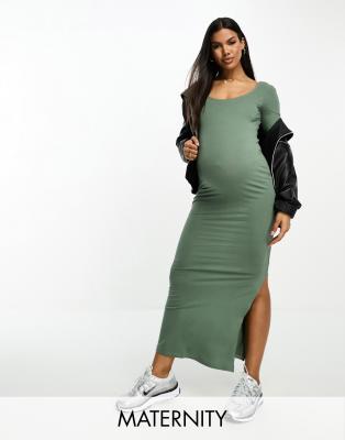Vero Moda - Zwangerschapskleding - Bodycon midi-jurk met zijsplitten in kaki