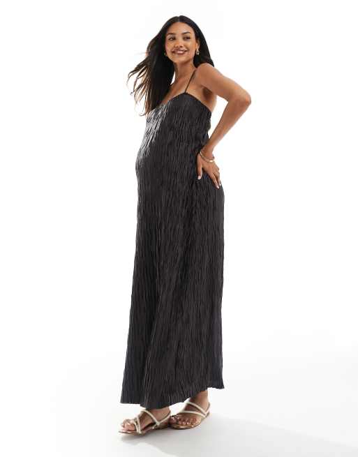 Vero Moda - Zwangerschapskleding - Plissé maxi jurk met textuur en dunne bandjes in chocoladebruin