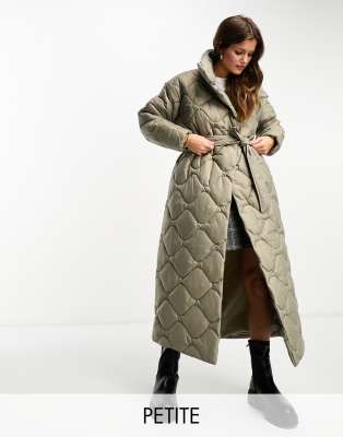 Vero Moda Petite - Doorgestikte hoogsluitende lange gewatteerde jas in stone