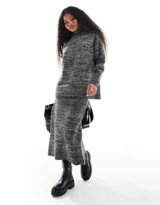 Vero Moda Petite - Gebreide midirok in gemêleerd zwart-wit, deel van co-ord set