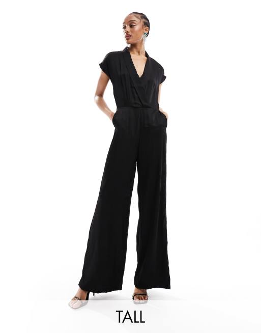 Vero Moda Tall - Hoogsluitende jumpsuit met korte mouwen in zwart