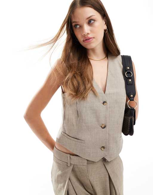 Vero Moda - Aware - Gilet van co-ord set met textuur in gemêleerd taupe grijs
