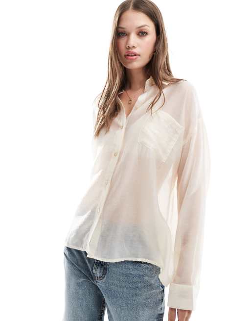 Vero Moda - Aware - Oversized doorschijnend overhemd in crème