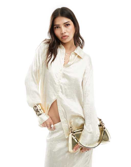 Vero Moda - Aware - Oversized satijnen plissé oversized in crème, deel van co-ord set
