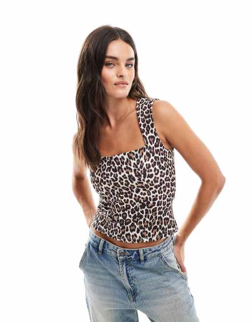 Vero Moda - Camitop met vierkante hals in luipaardprint