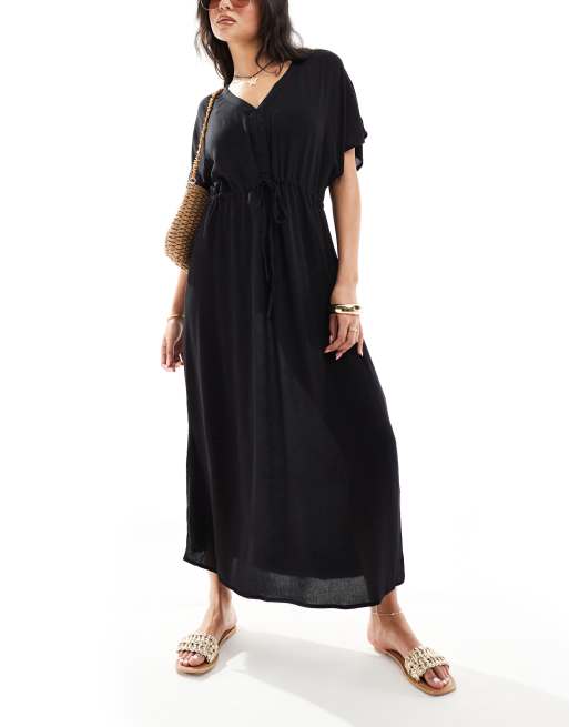 Vero Moda - Doorschijnende lange kimono-strandjurk in zwart