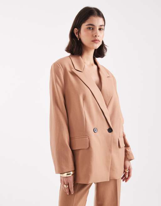 Vero Moda - Double breasted blazer met visgraatmotief in mokka, deel van co-ord set