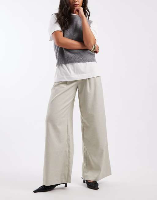 Vero Moda - Elegante broek met wijde pijpen en plooien aan de voorkant in gemêleerd crème
