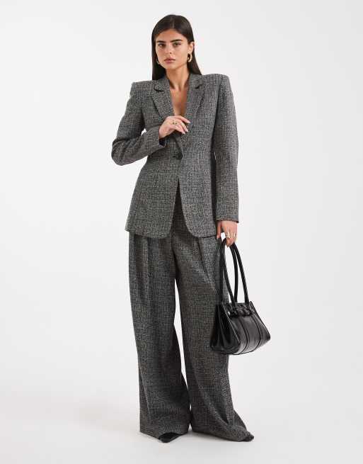 Vero Moda - Elegante co-ord set van tweed met getailleerde blazer en broek met wijde pijpen in zwart-wit