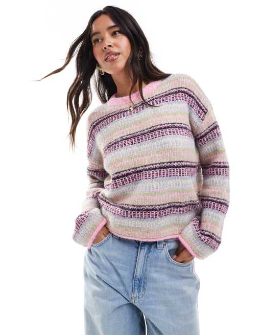 Vero Moda - Gebreide trui met gemixte strepen in multi roze