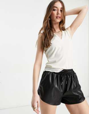 Vero Moda - Geribbeld hemdje met geschulpte zoom in crème