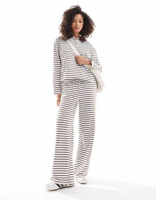 Vero Moda - Gestreepte jersey broek met wijde pijpen in crème en bruin, deel van co-ord set