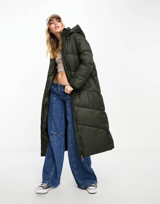 Vero Moda - Gewatteerde lange jas met lange pasvorm in kaki