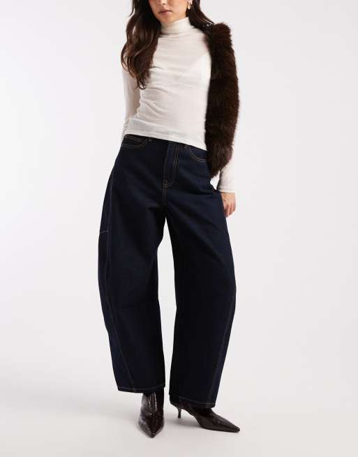 Vero Moda - Kaitlin - Jeans met wijde ballonpijpen en contrasterende stiksels in raw indigo