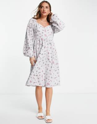 Vero Moda - Midi-jurk met korsetdettail in stone met bloemenprint