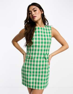 Vero Moda - Mini-jurk van bouclé in groen geruit