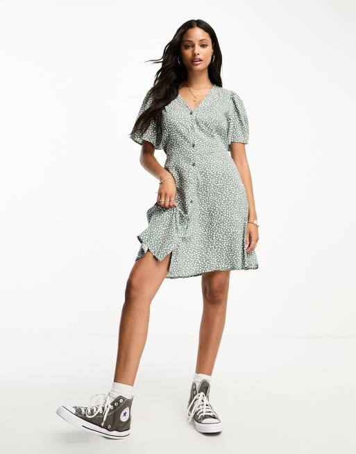 Vero Moda - Mini skaterjurk met knoopsluiting in groene stippen