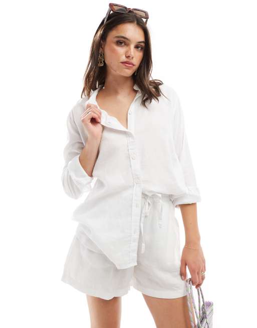Vero Moda - Oversized overhemd van linnen in wit, deel van co-ord set