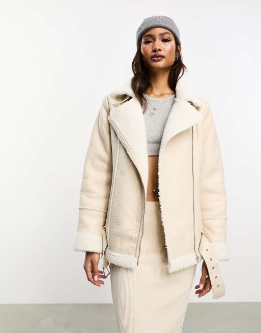 Vero Moda - Oversized pilotenjack met leerlook in crème