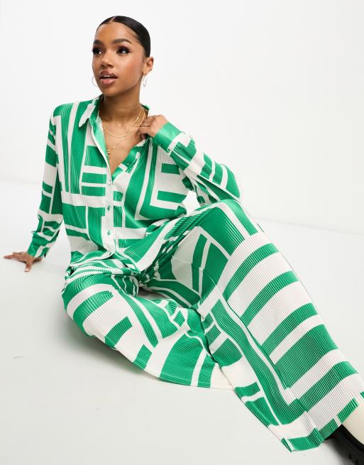 Vero Moda - Plissé overhemd met print in groen en wit, deel van co-ord set