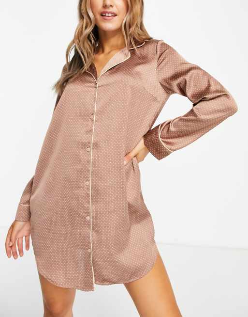 Vero Moda - Satijnen nachthemd in mokka met polkadots