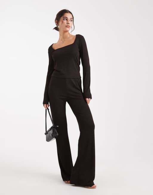 Vero Moda - Set met top met vierkante hals en lange mouwen en broek in chocoladebruin en koper met glitter