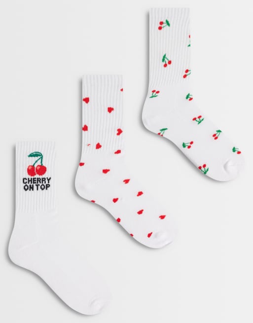 Vero Moda - Set van 3 paar sportsokken in wit met kersendetails