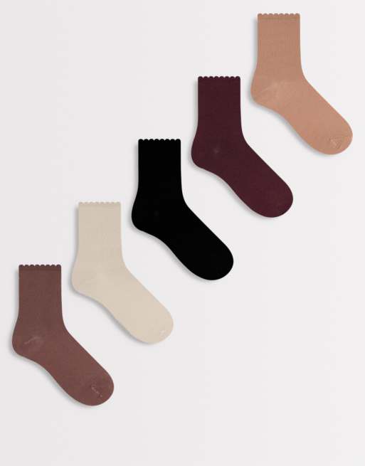 Vero Moda - Set van 5 paar enkelsokken met geschulpte bovenkant in neutrale kleuren