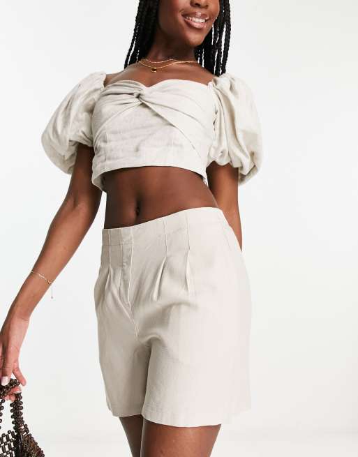 Vero Moda - Short van linnenmix met plooi aan de voorkant in stone