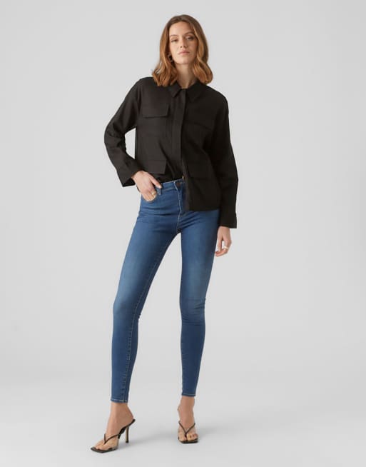 Vero Moda - Skinny fit jeans in middenblauw denim