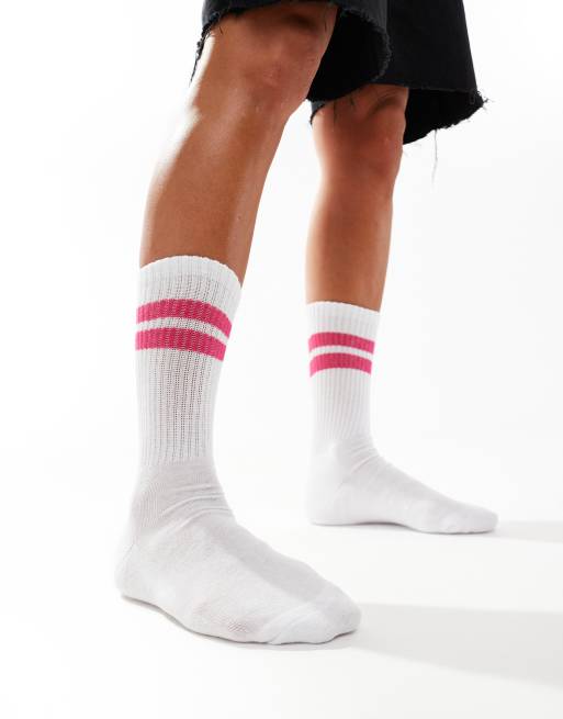 Vero Moda - Sportieve geribbelde sokken in wit en roze