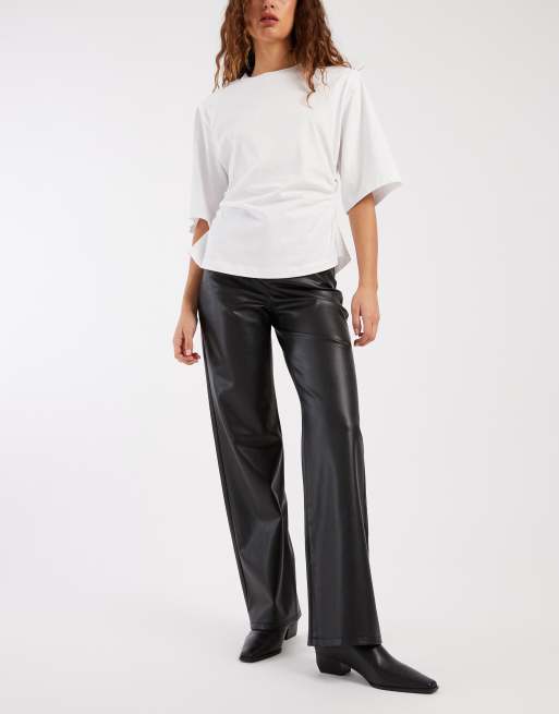 Vero Moda - Tessa - Imitatieleren broek met hoge taille en wijde pijpen in zwart