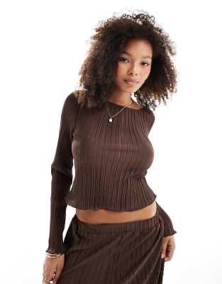 Vero Moda - Top van plissé met wijde mouwen in chocoladebruin, deel van co-ord set