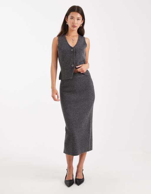Vero Moda - Zacht gebreide midirok in gemêleerd grijs, deel van co-ord set