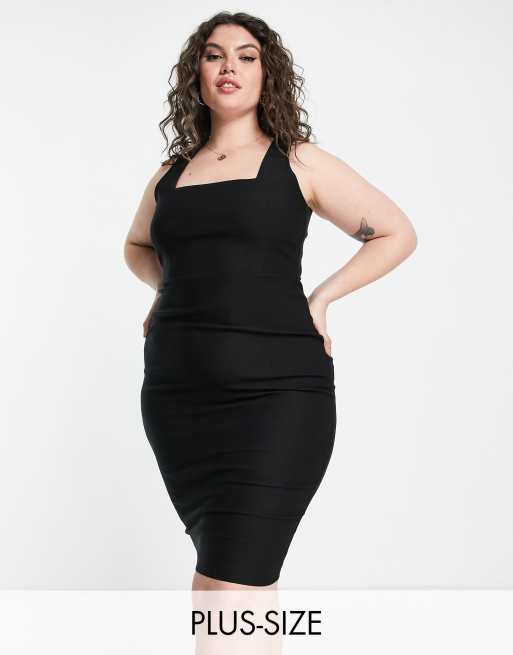 Vesper Plus - Midi-jurk met vierkante halslijn in zwart
