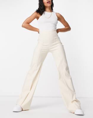 Vesper - Broek met wijde pijpen en siernaden in ecru