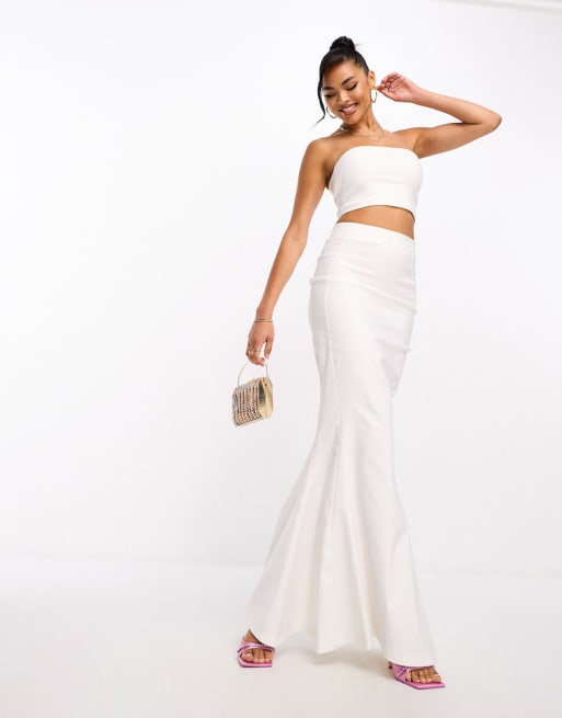 Vesper - Co-ord set van bandeautop en maxi rok met fishtail in wit