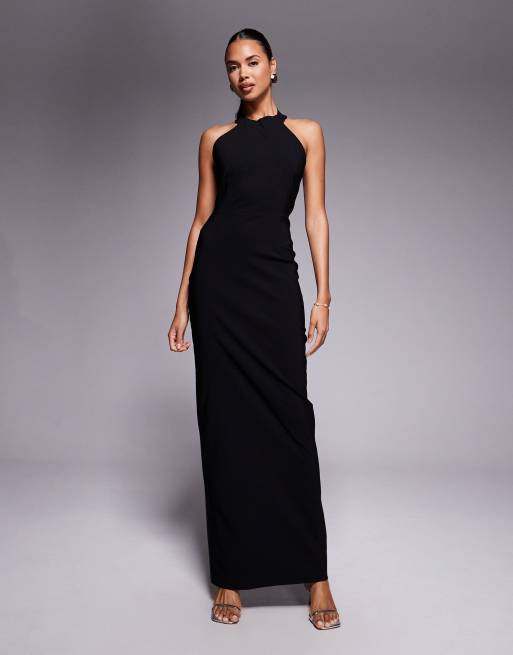 Vesper - Maxi jurk van bengaline met hoge halternek en laaguitgesneden rug in zwart