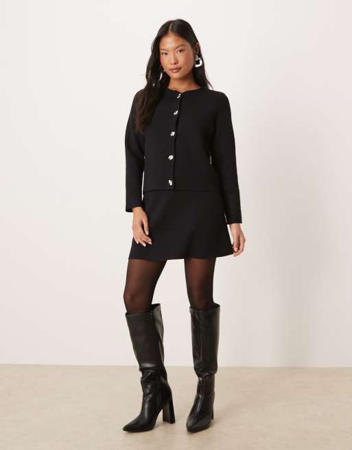 VILA Petite - Co-ord set van geribbeld vest met gehamerde zilveren knopen en minirok in zwart