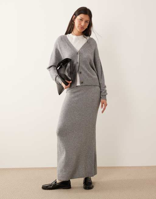 VILA - Gebreide co-ord set van vest en maxirok in gemêleerd donkergrijs