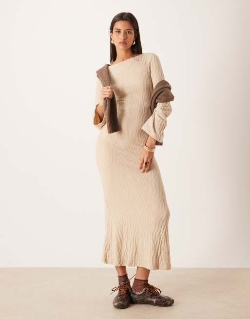 VILA - Gebreide maxi jurk in neutrale zebraprint