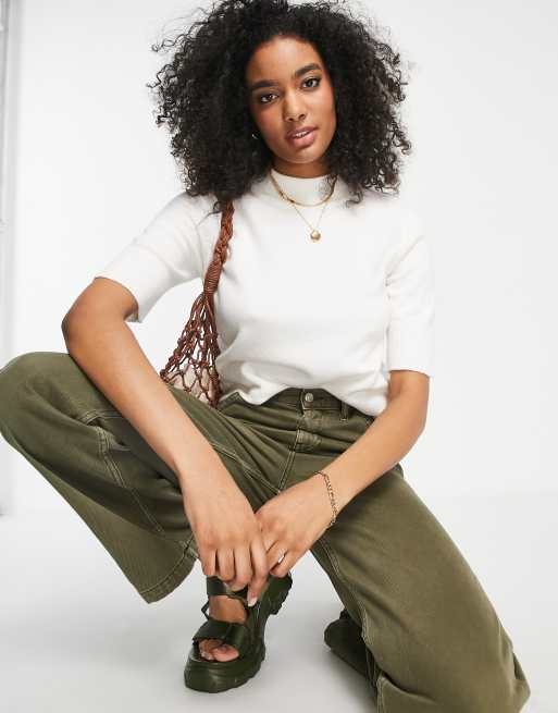 Vila - Gebreide top met korte mouwen in wit